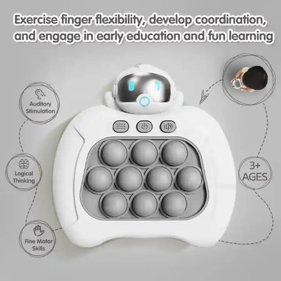 Bring the viral bubble-popping craze to life with this light-up electronic fidget game—part brain-teaser, part reflex trainer, and 100 % fun on the go.
