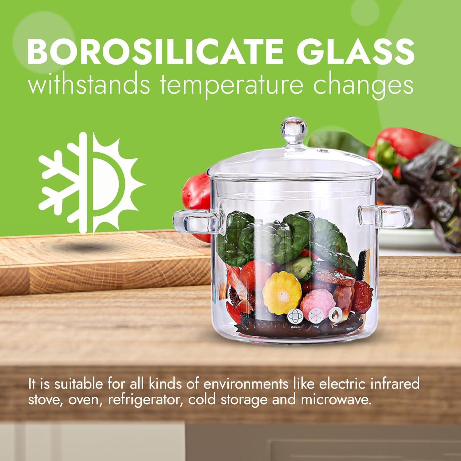 Cook with ease using these clear glass saucepans that let you monitor your food without lifting the lid. Simply glance over from a distance while prepping your next task—no need to interrupt the cooking process. This borosilicate glass cookware works on both gas and electric stoves, offering convenience and versatility for any kitchen.
