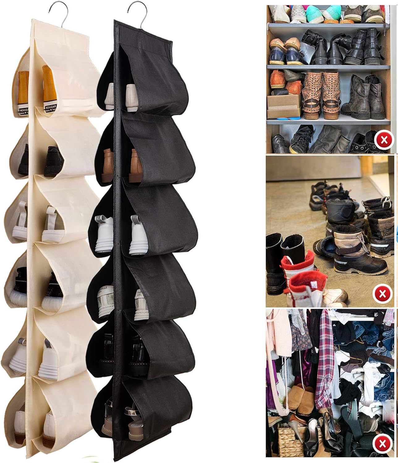 Transform your closet into an organized haven with the Hanging Shoe Organizer. Designed to hold up to 12 pairs of shoes, this efficient storage solution frees up valuable floor space while keeping your belongings neat and accessible. Crafted with durable, breathable fabric and featuring an easy-to-hang design, itโs the perfect addition to compact spaces like dorms, apartments, and entryways.