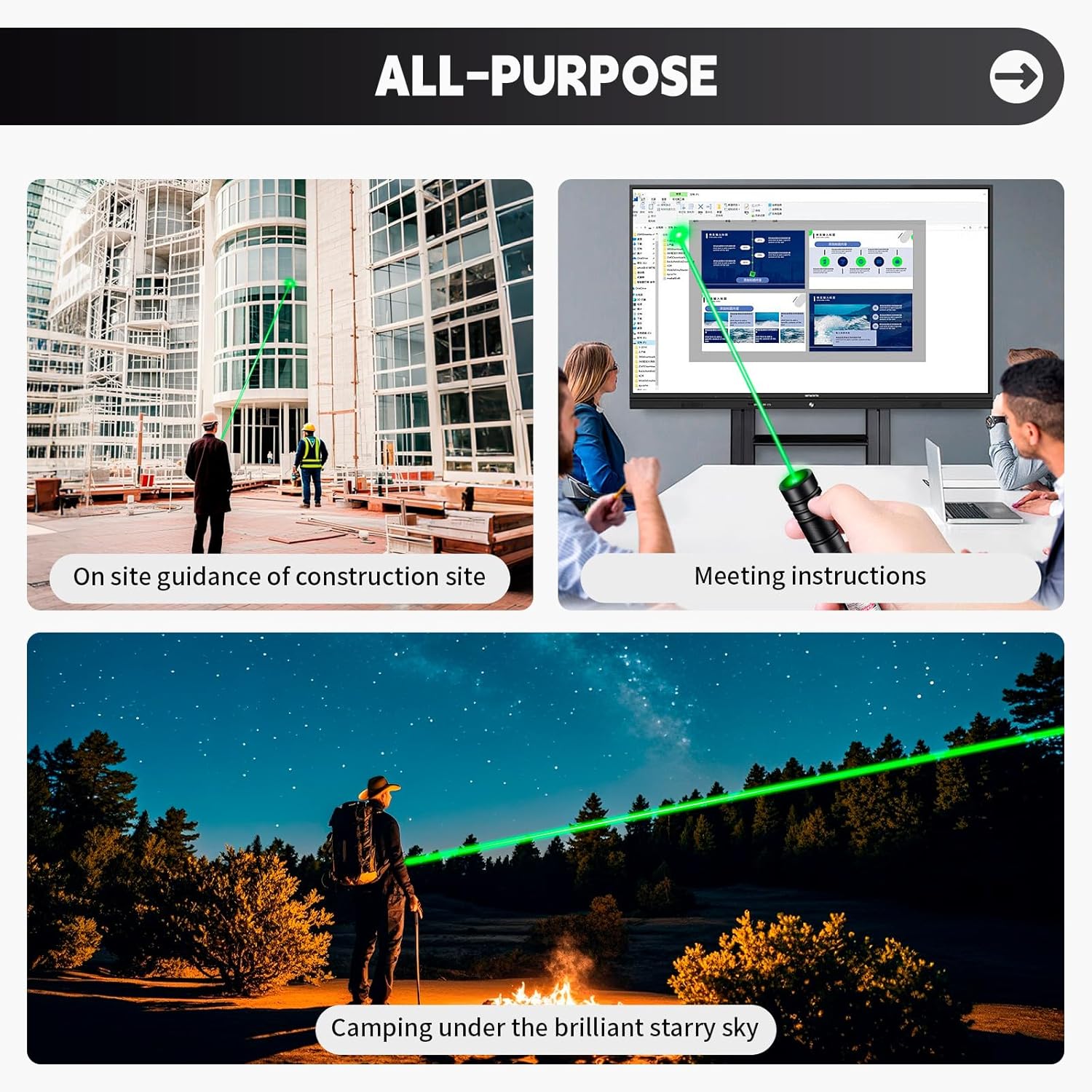 Enhance your adventures and daily tasks with the High-Power Green Laser Pointer—durable, rechargeable, and perfect for any scenario! 🌌✨