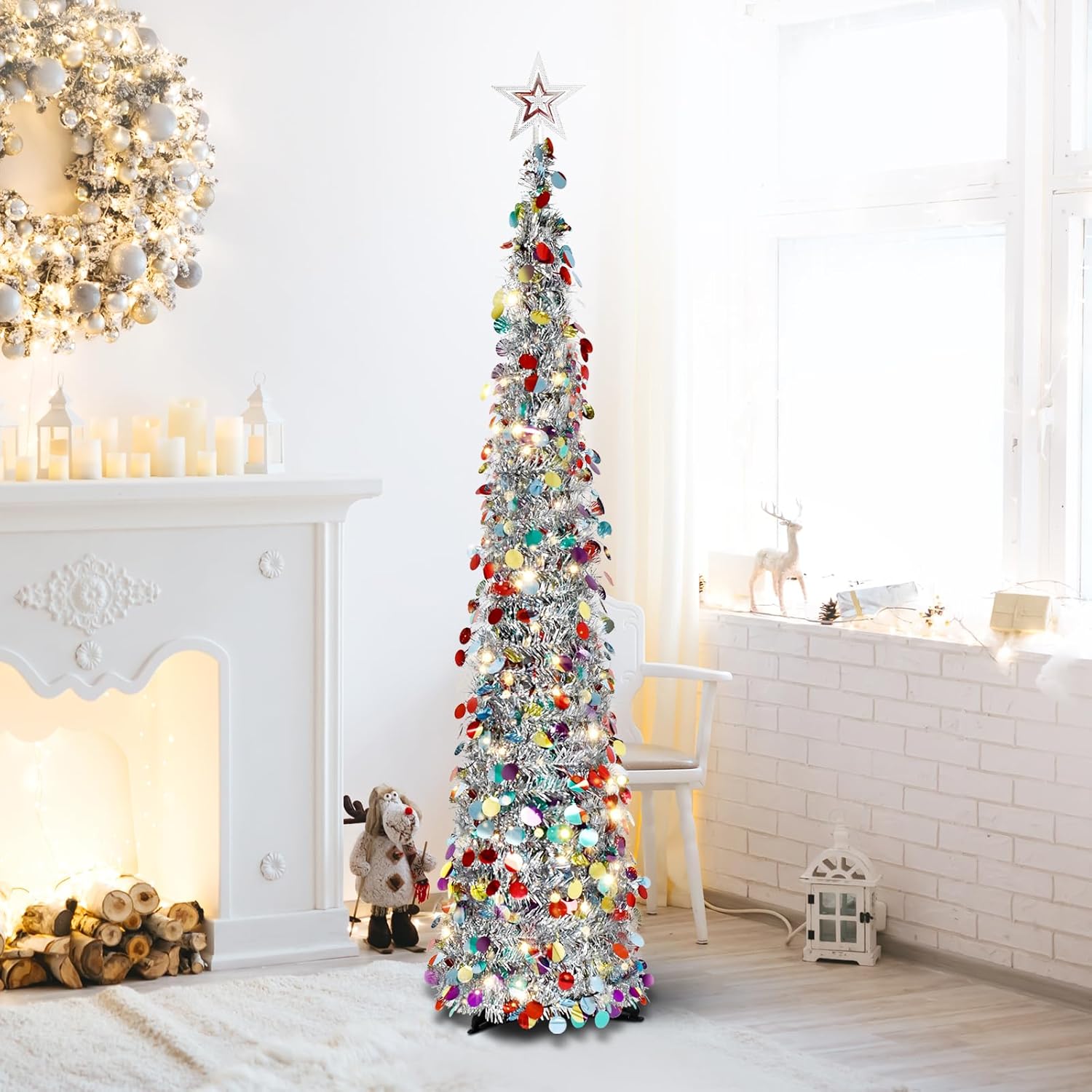 Add instant festive cheer to any space with this 5ft Pop-Up Tinsel Christmas Tree, designed to shine bright and impress — no lights needed!