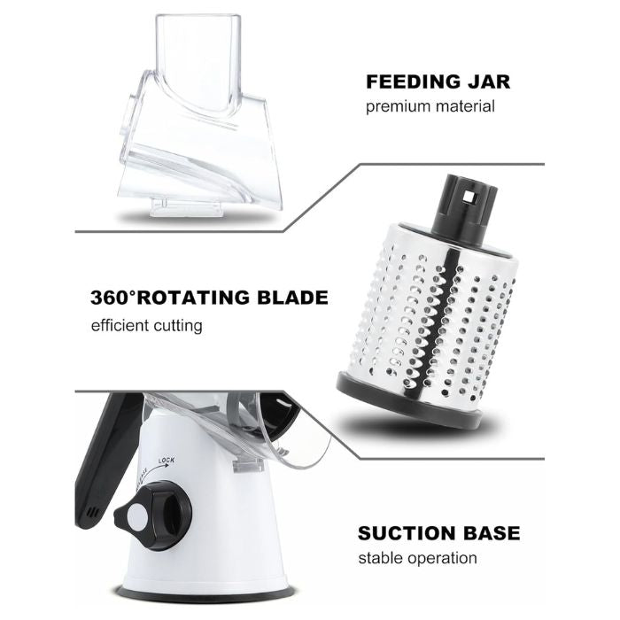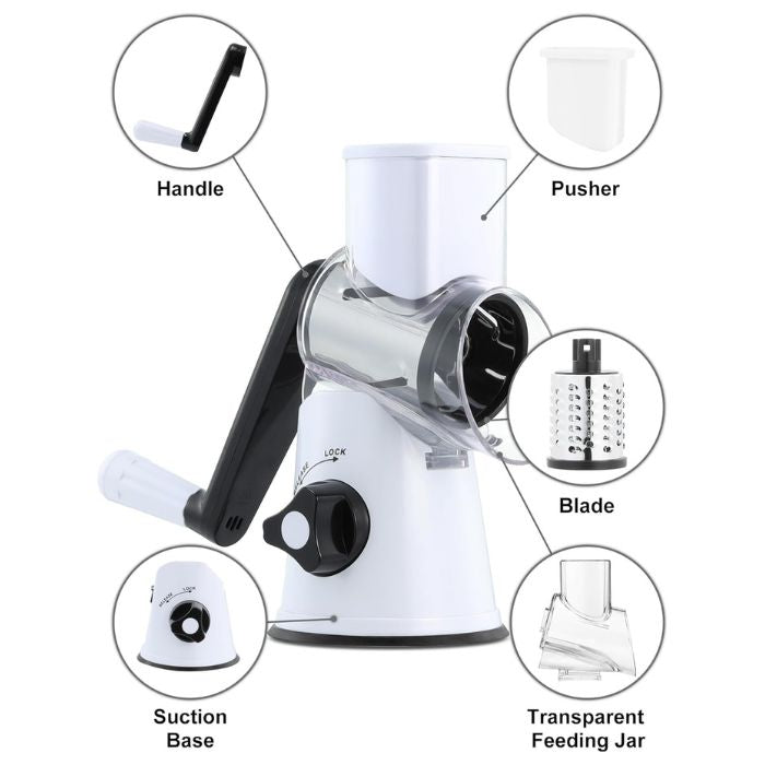 Enjoy fast, hassle-free shredding with this all-in-one rotary cheese graterâno electricity, no danger of touching blades, and made entirely from food-grade, BPA-free materials.