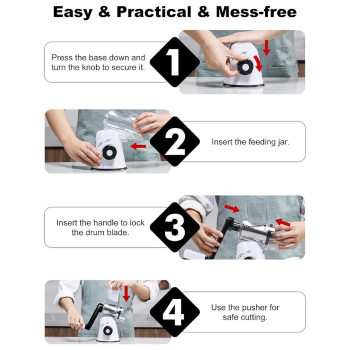 Crank the Handle: One full rotation = 12 cutting actionsâgreatly speeding up prep!