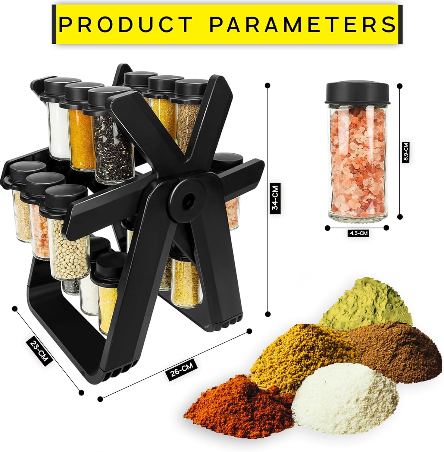 360° reach – smooth rotation shows every jar at a glance.
