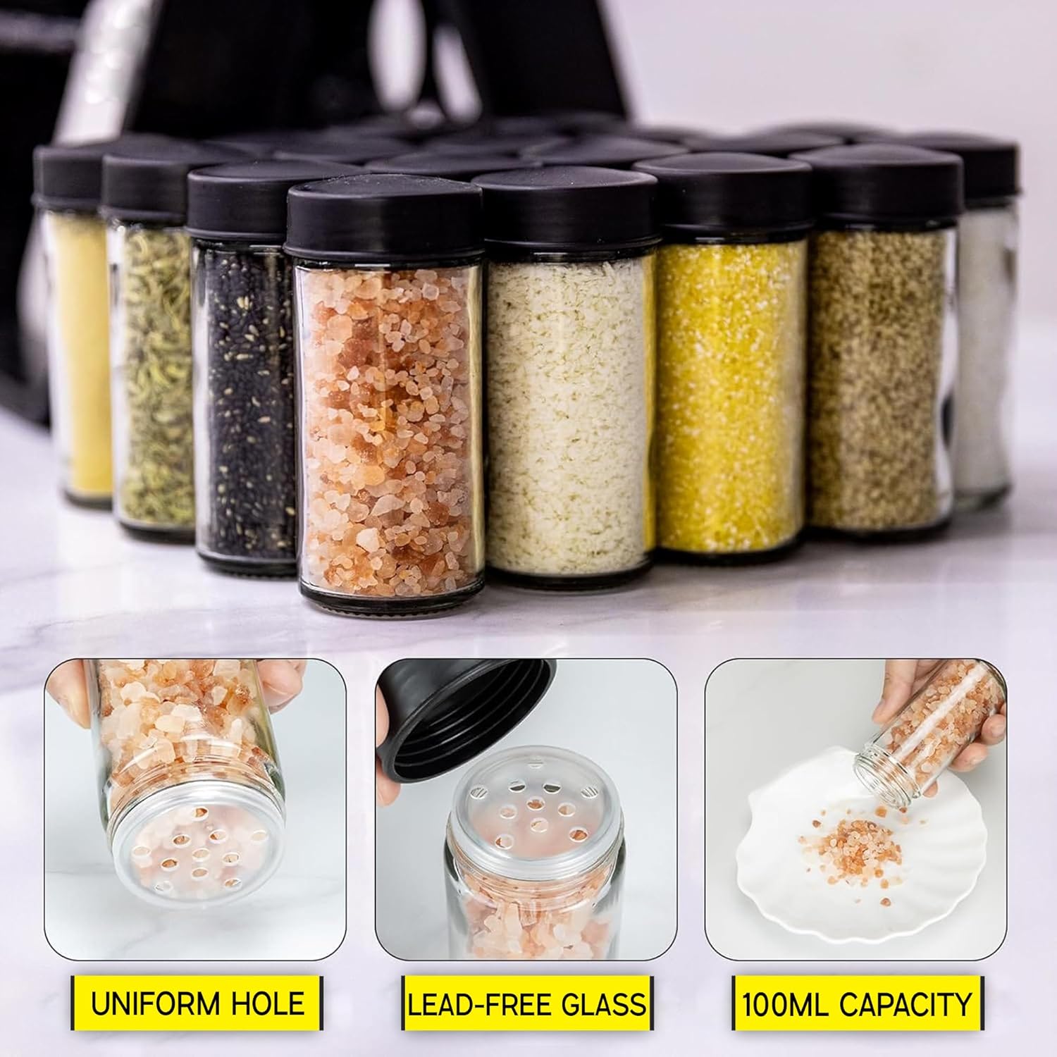 18 airtight glass jars – lock in freshness, no stale spices.